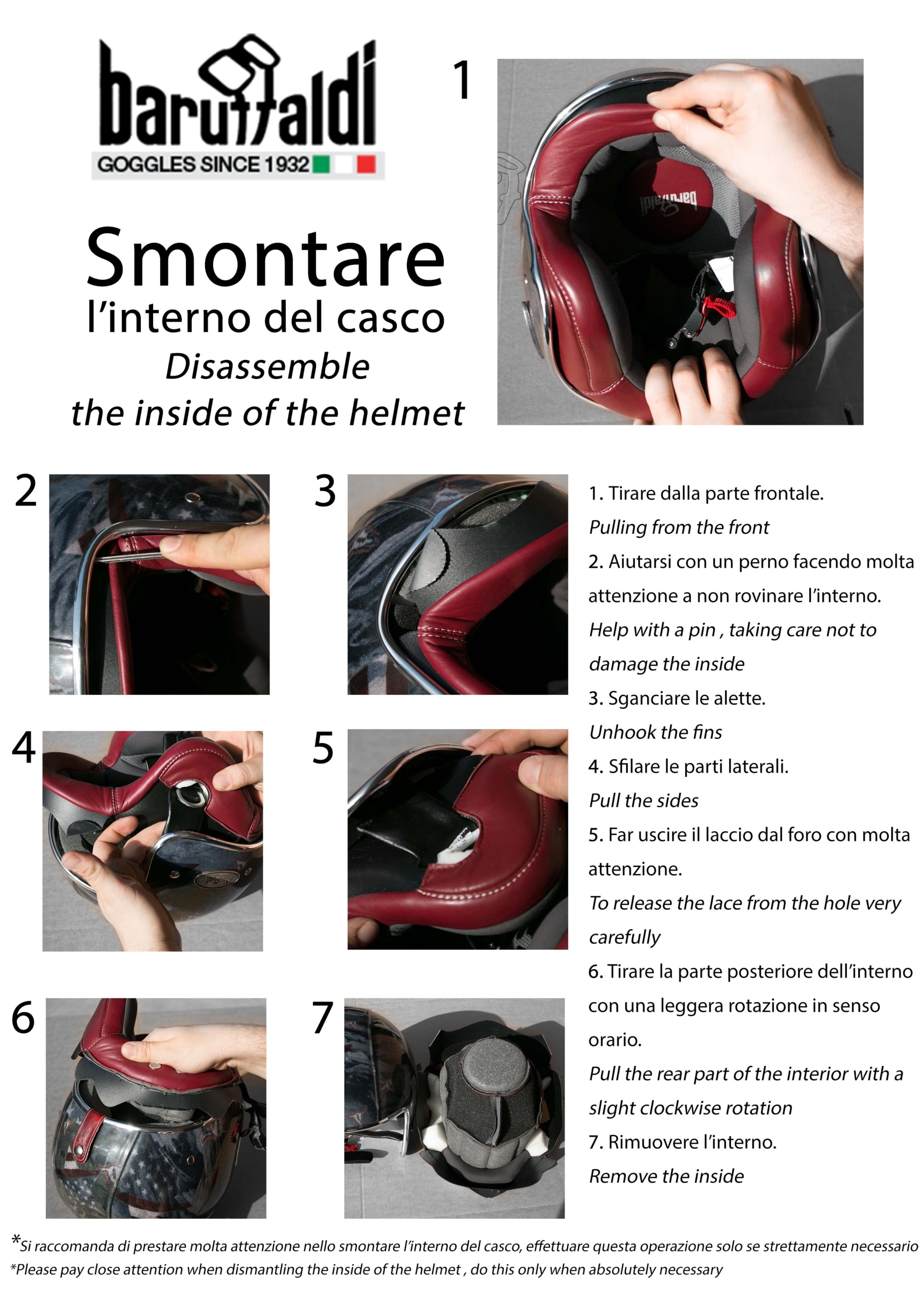 Si raccomanda di prestare molta attenzione nello smontare/rimontare l’interno del casco, effettuare questa operazione solo se strettamente necessario.